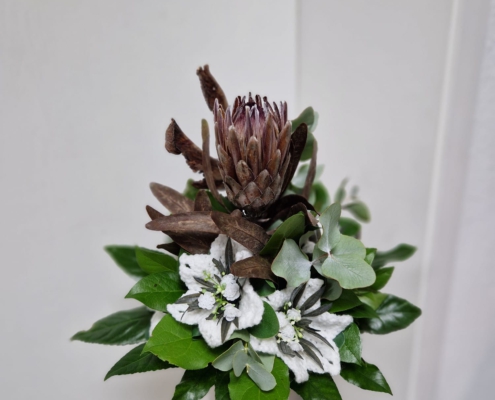 In Kombination mit echten Zweigen, Naturvasen oder getrockneten Gräsern wirken selbst große künstliche Blumenarrangements stimmig. Wichtig ist, dass du beim Kauf auf Qualität achtest – billige Modelle wirken oft zu bunt oder unnatürlich.